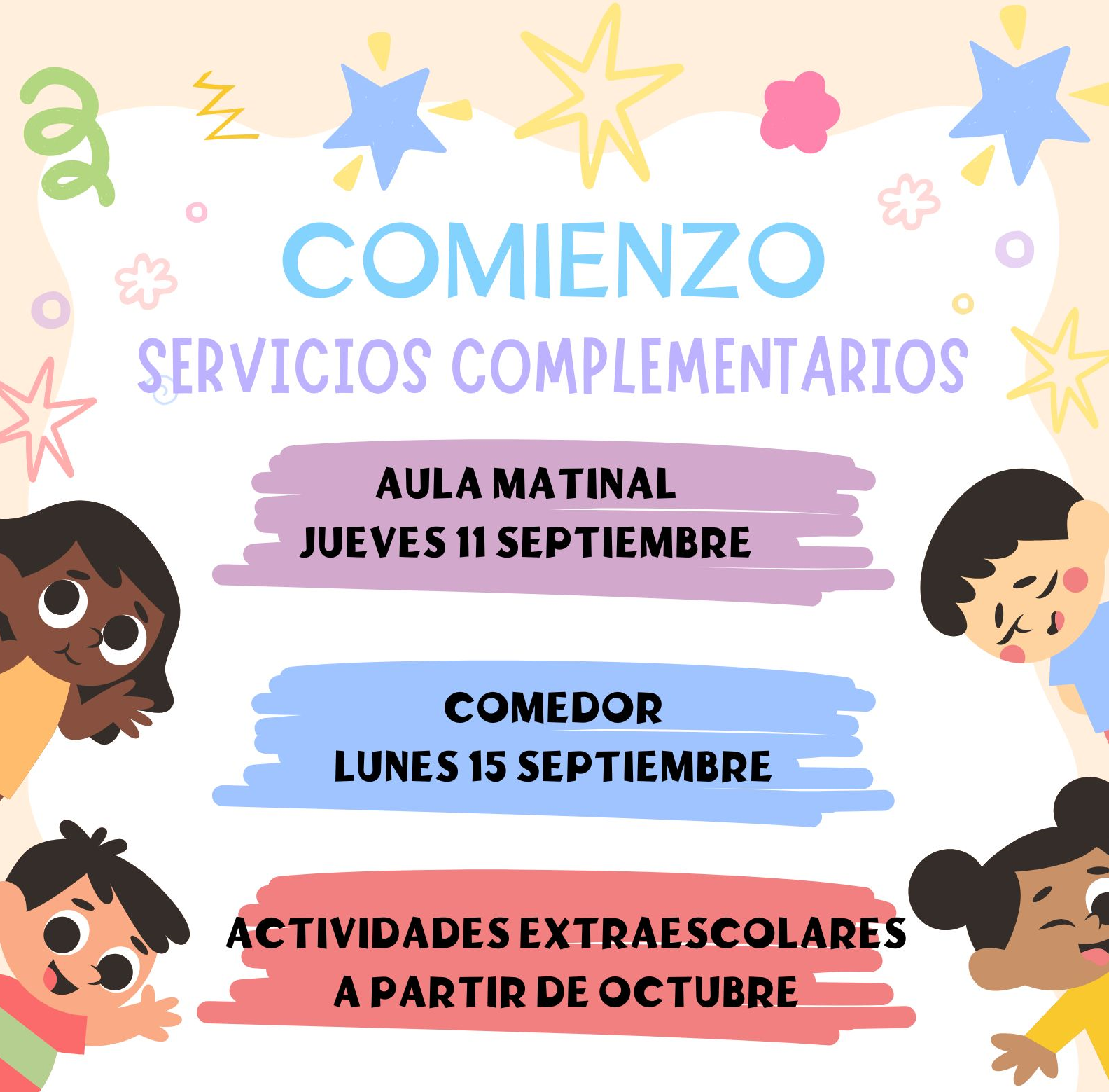 Les informamos que los servicios complementarios del centro darán comienzo en las siguientes fechas: