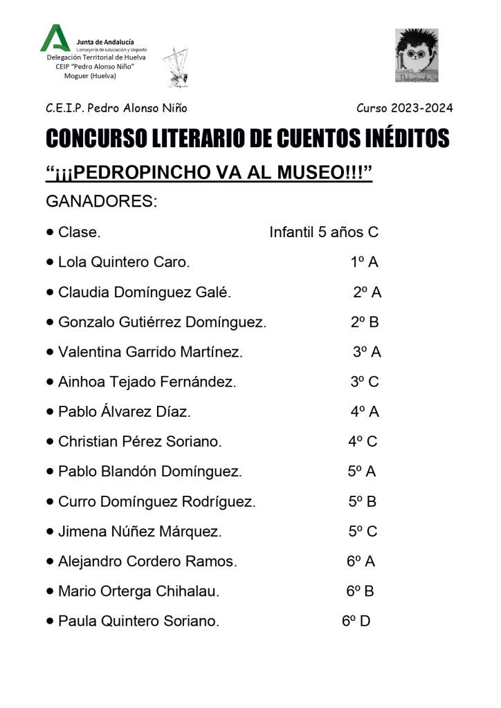 Este año los ganadores del concurso de cuentos han sido los siguientes:
