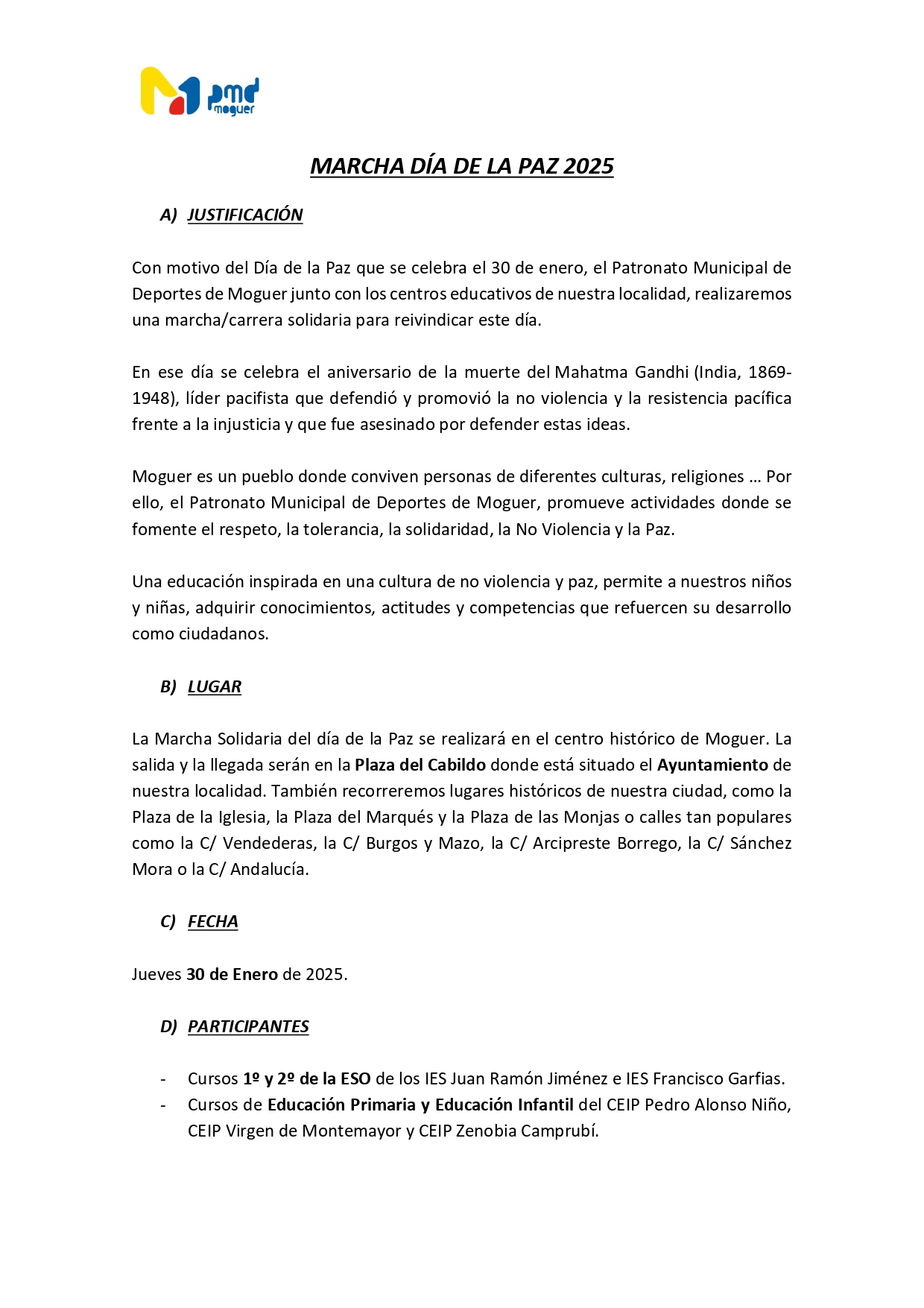 Todos los centros educativos de Moguer, nos uniremos este 30 de Enero para realizar una marcha solidaria por la PAZ.