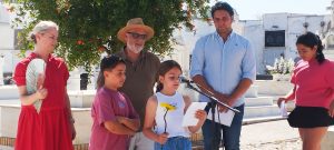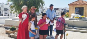 Hoy, jueves 29 de Mayo de 2025, con motivo de la celebración del aniversario del fallecimiento de nuestro poeta Juan Ramón Jiménez (29 de mayo 1958), tres alumnos-as de cuarto de Ed. Primaria de nuestro centro han leído unos poemas y realizado una ofrenda floral en la tumba del poeta.