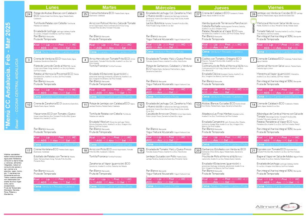 MENÚ del COMEDOR: 24 Feb.-25 Marz.