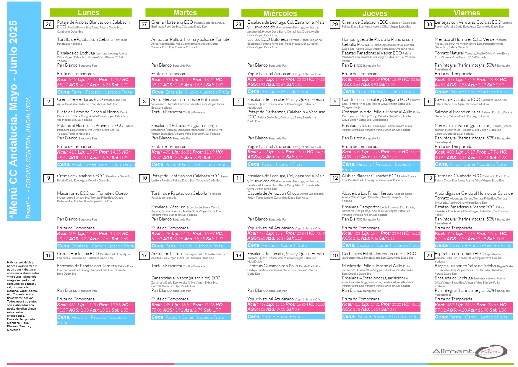 MENÚ del COMEDOR: 26 Mayo – 20 Junio.