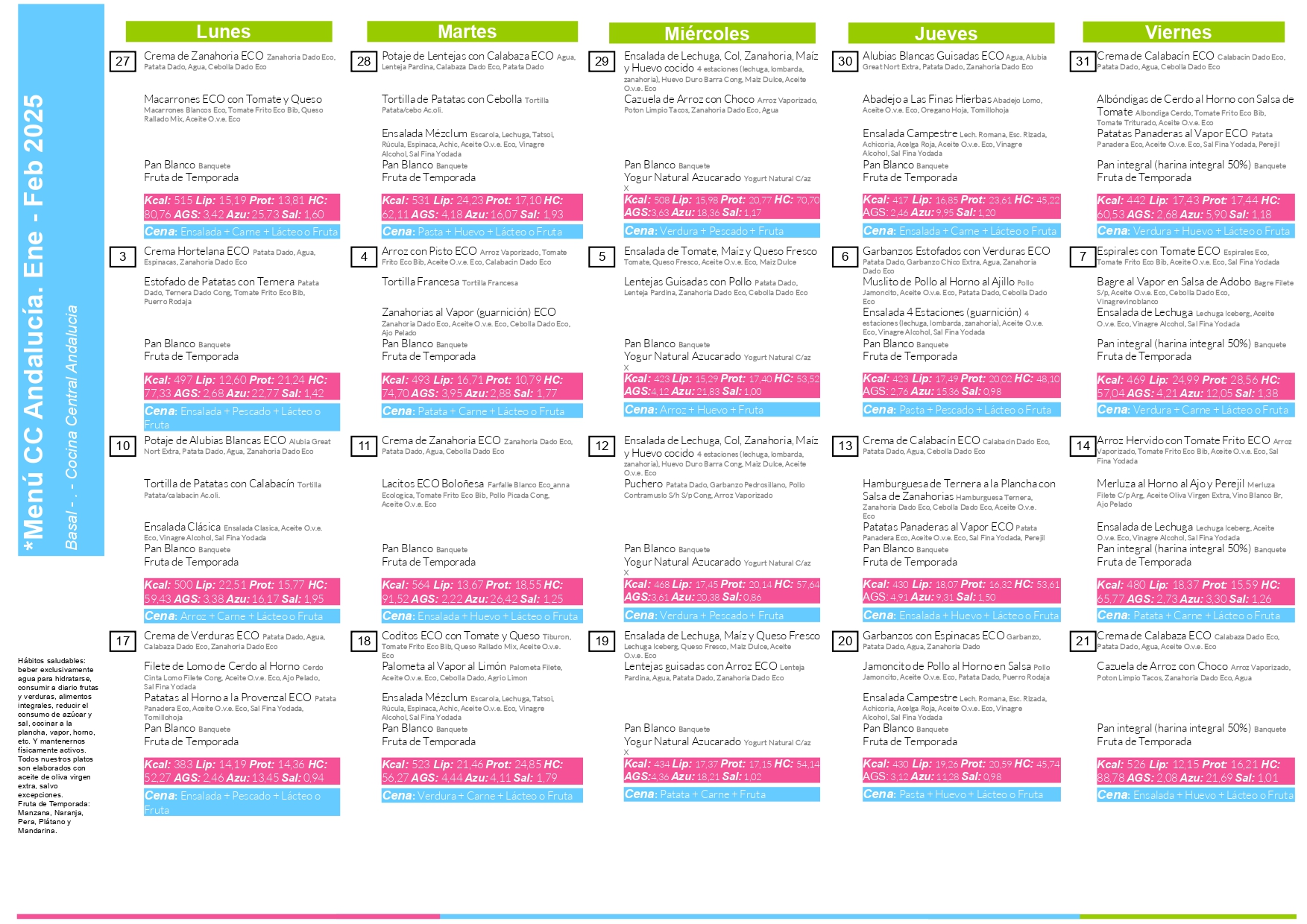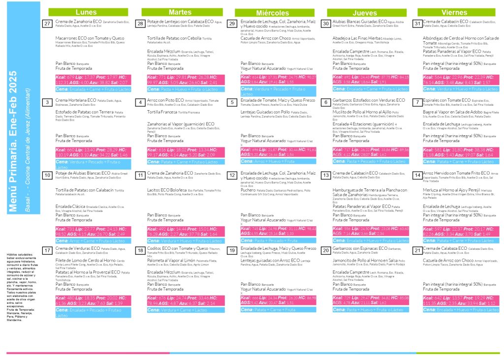 MENÚ del COMEDOR: 27 Ene.- 21 Feb.