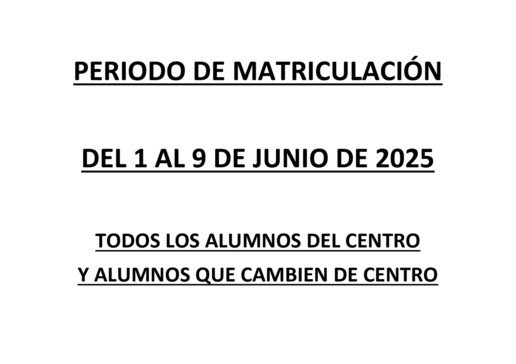 PERIODO DE MATRICULACIÓN Y PAC curso 2025/26