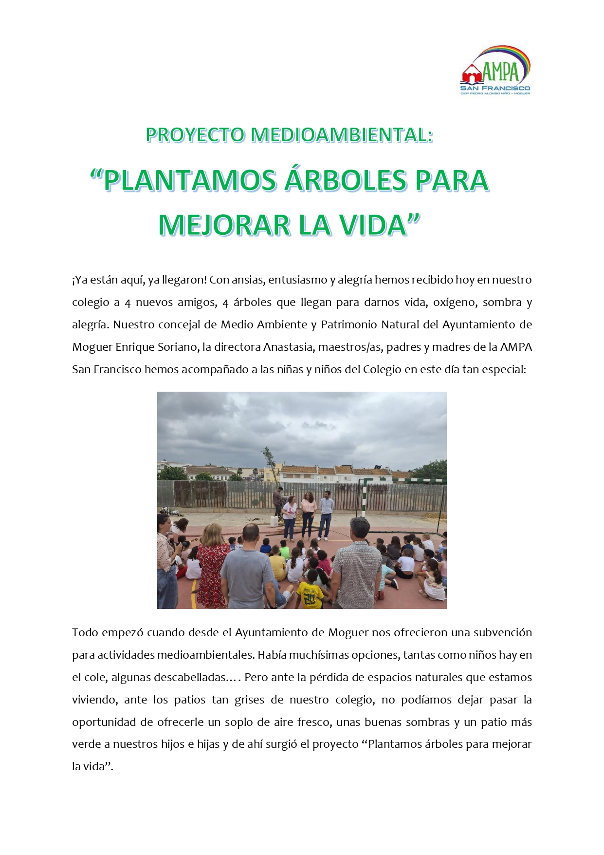PLANTAMOS ÁRBOLES PARA MEJORAR LA VIDA