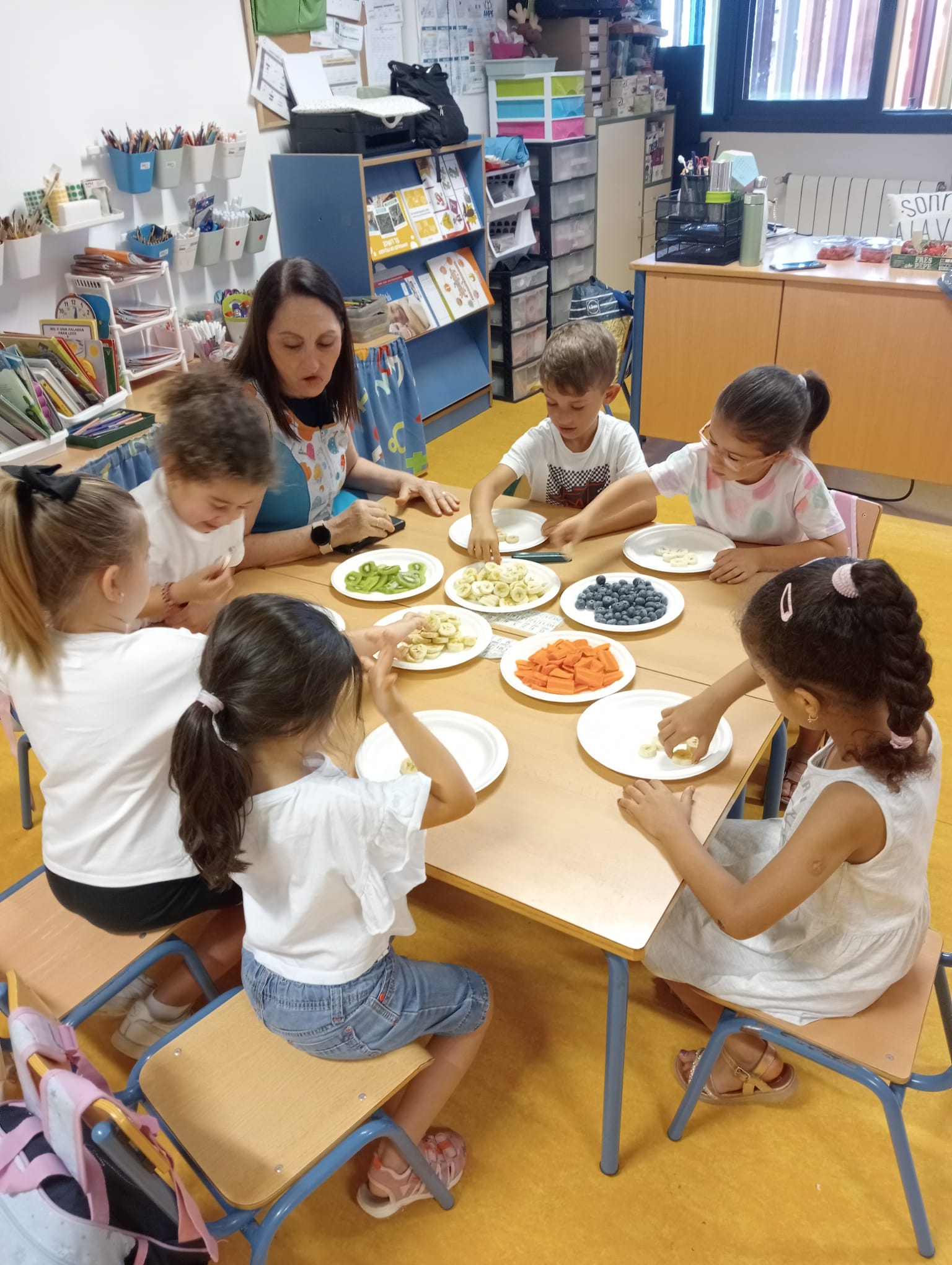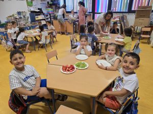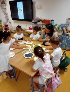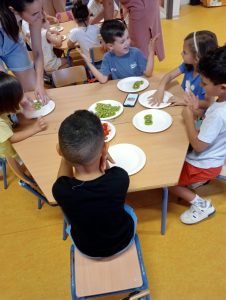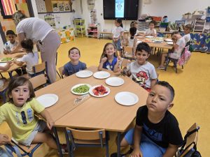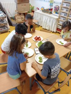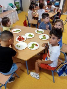 Como colofón al proyecto «Del huerto a la mesa» en 4 años hemos hecho unas figuritas con diferentes frutas que han degustado después de divertirse haciéndolos.